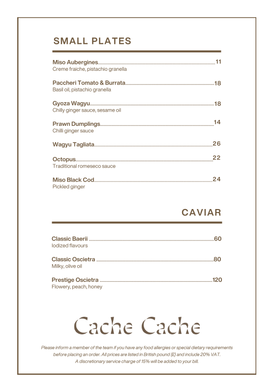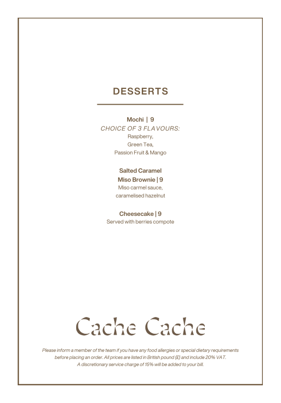 For anyone in the Covent Garden area seeking a restaurant that’s refined yet unpretentious, Cache Cache is a must-visit. The menu speaks volumes about the culinary team’s creativity and commitment to excellence, making this a go-to spot for date nights, special occasions, or simply a luxurious evening out.